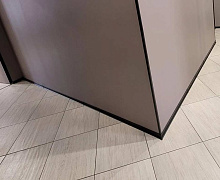 Особенности монтажа: данный алюминиевый плинтус крепится к стене на жидкие гвозди. Для оформления внутренних и наружных углов используется специальная алюминиевая фурнитура.